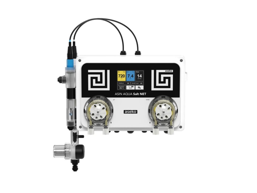 ASIN AQUA Salt NET Redox je kompaktné dávkovacie zariadenie určené na účinnú a spoľahlivú úpravu slanej vody v bazénoch. Je navrhnuté pre každodennú prevádzku domácich bazénov a kombinuje meranie oxidačno-redukčného potenciálu (ORP) cez Redox senzor s dlhou životnosťou spolu s pH sondou pre automatickú reguláciu pH.