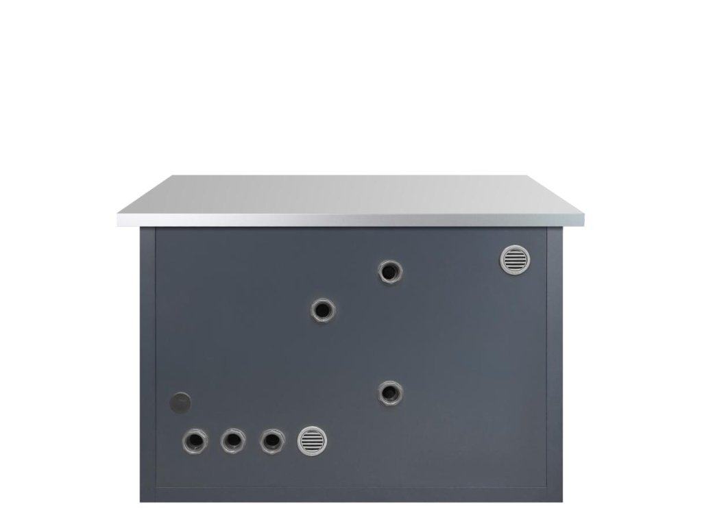 Box je vyrobený z odolných izolačných panelov PUR s hrúbkou 36 mm, ktoré pomáhajú chrániť technológiu pred poveternostnými vplyvmi aj teplotnými výkyvmi. Otváracia strecha z materiálu Alucobond zabezpečuje pohodlný prístup k automatom, čerpadlu a nádržiam s chémiou pri údržbe a servise. Moderné antracitové prevedenie sa esteticky hodí k väčšine bazénových technológií a záhradných realizácií.