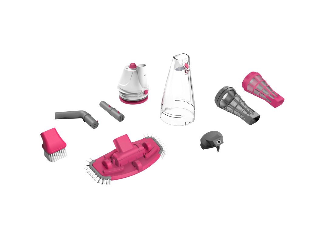 Nečistoty zachytáva priamo do priehľadného koša, vďaka čomu máte okamžitý prehľad o tom, ktoré nečistoty sa vám už podarilo povysávať. Súčasťou je sacia hlava s bočnými kartáčmi, ktorá pomáha pri zbere nečistôt pri čistení povrchov.