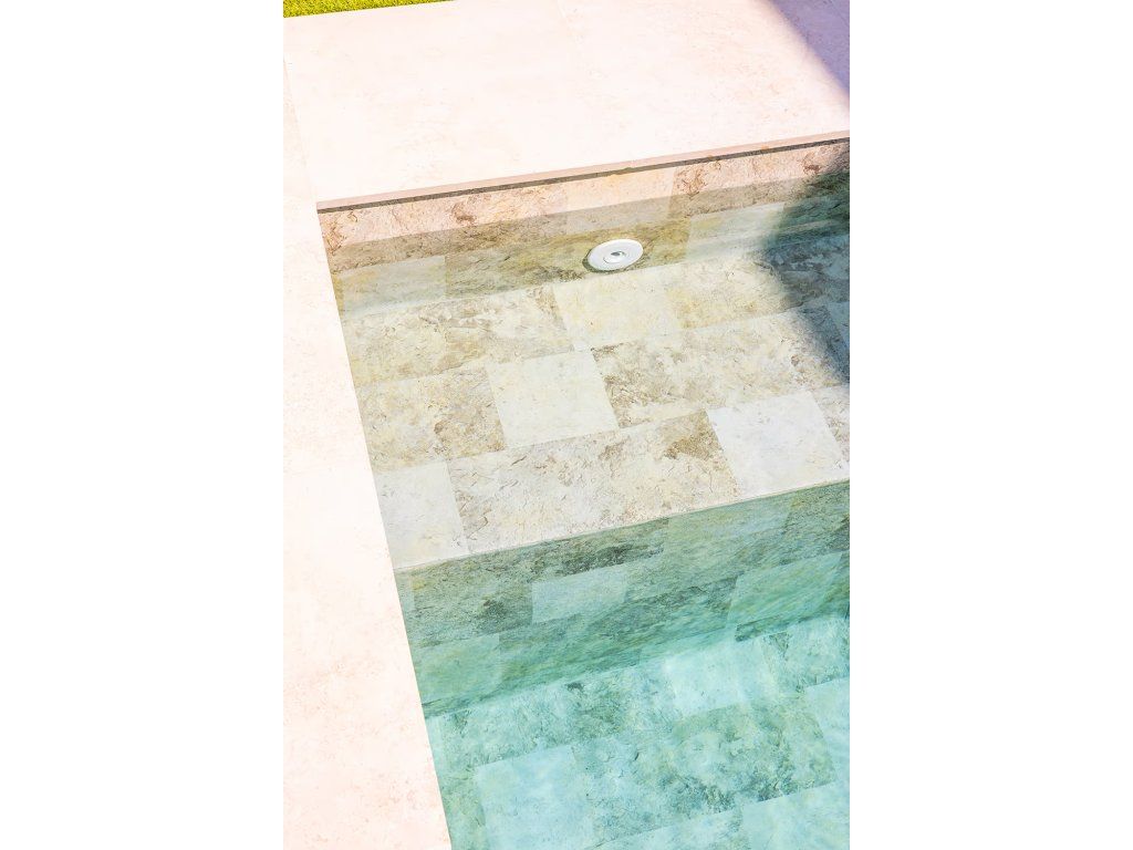 Povrch fólie je jemne štrukturovaný, realistický na pohľad aj na dotyk, a zároveň je navrhnutý tak, aby podporoval bezpečný pohyb v bazéne. Fólia spĺňa protišmykové štandardy pre bazénové aplikácie (trieda C), čo z nej robí vhodnú voľbu aj pre priestory, kde sa kladie dôraz na istotu kroku.