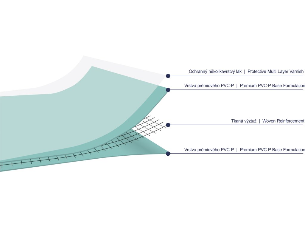 - materiál: PVC-P vystužené tkanou polyesterovou sieťovinou