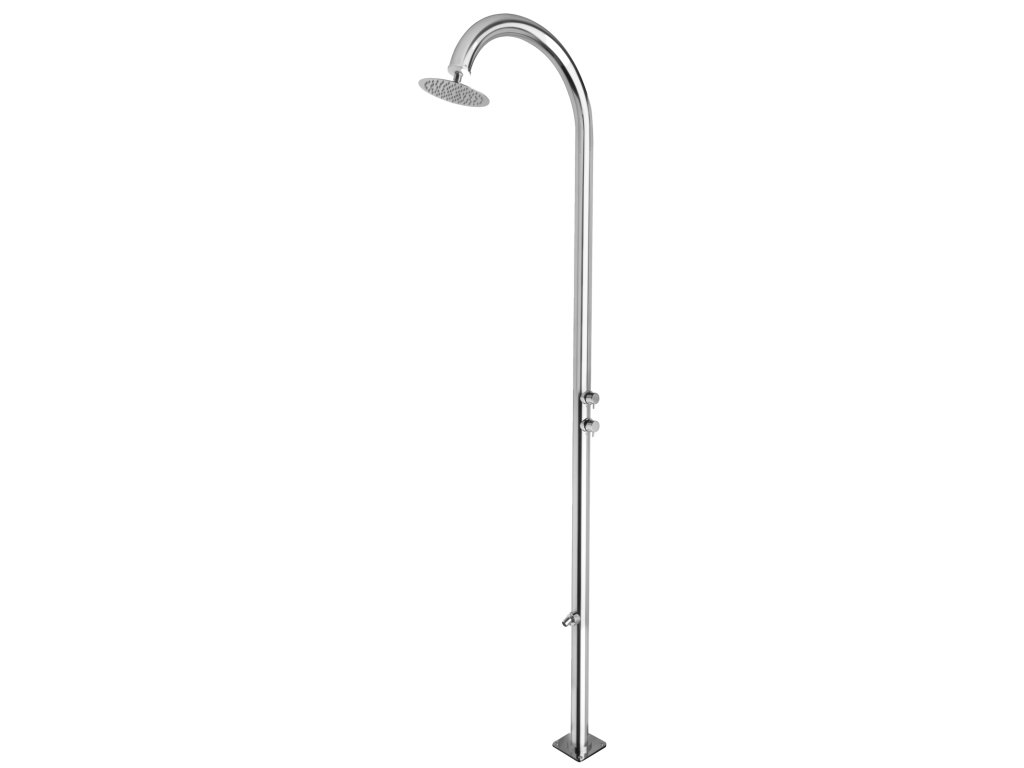 Sprcha je vyrobená z nehrdzavejúcej ocele AISI 316, odolnej voči korózii, UV žiareniu a nepriaznivým poveternostným podmienkam. Tento kvalitný materiál zaručuje dlhú životnosť, jednoduchú údržbu a stále elegantný vzhľad aj po rokoch používania.