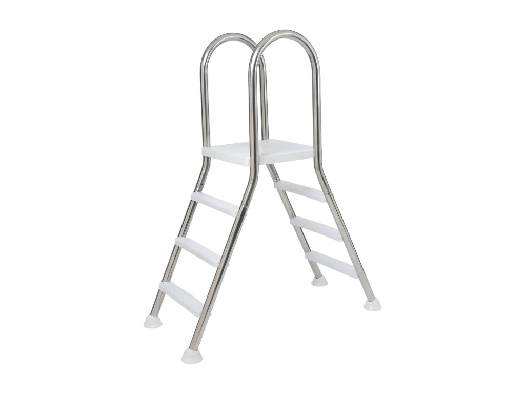 Dvojitý nerezový rebrík 4 + 4-stupňový, do výšky 1,2m – kvalitný bazénový rebrík z nehrdzavejúcej ocele AISI-316 pre bezpečný vstup a výstup z bazéna s výškou steny do 1,2 m.