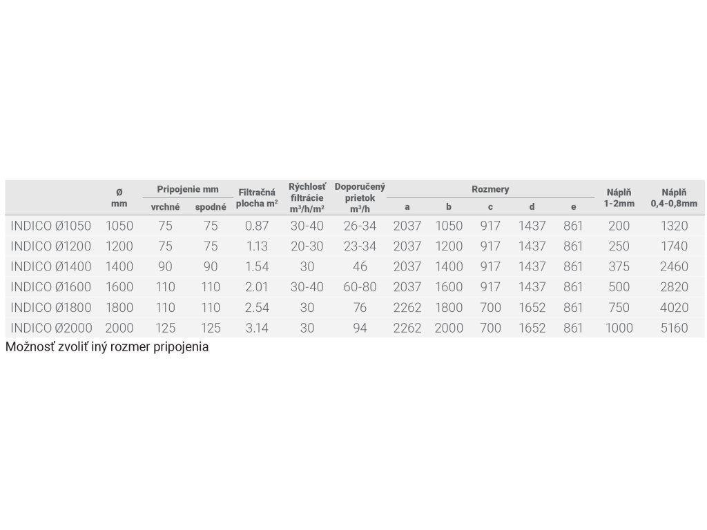 Filtračná nádoba INDICO disponuje kolektorovými ramenami a prevedením s falošným dnom. Súčasťou je bezpečnostný ventil proti pretlaku.