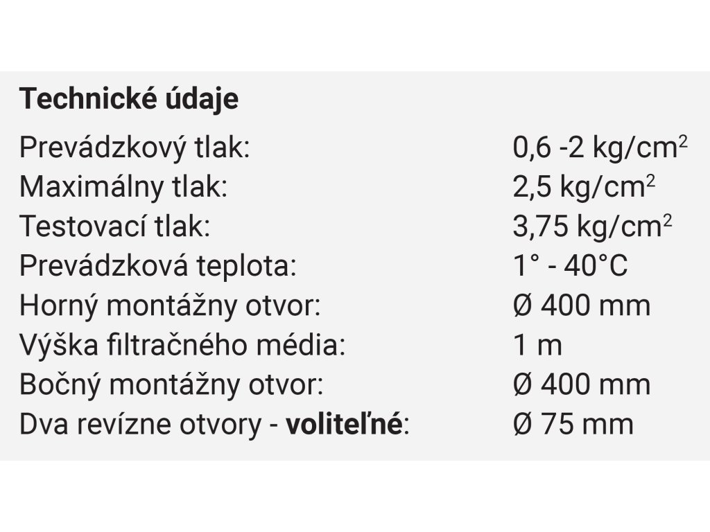 Povrchová UV ochrana chráni materiál pred starnutím, filtračné lôžko s výškou 1 m a kolektorové ramená zabezpečujú rovnomernú distribúciu vody.