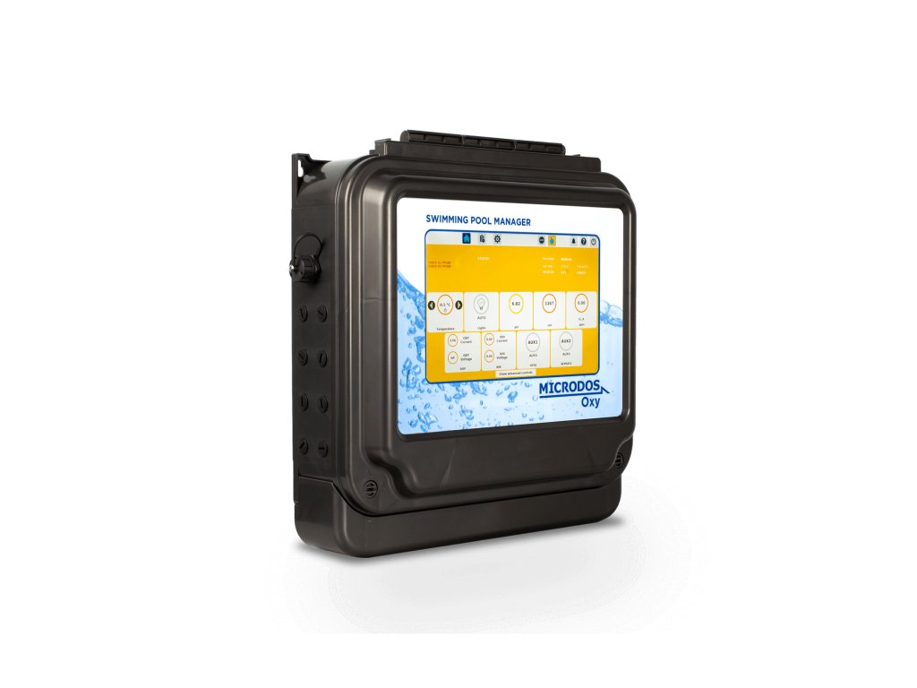 Pomocou ovládacej jednotky Microdos Oxy môžete sledovať, regulovať a nastavovať všetky dôležité parametre bazéna z jedného rozhrania. Zariadenie zvládne nielen proces hydrolýzy, ale aj ionizáciu, reguláciu pH, ORP a chlóru.