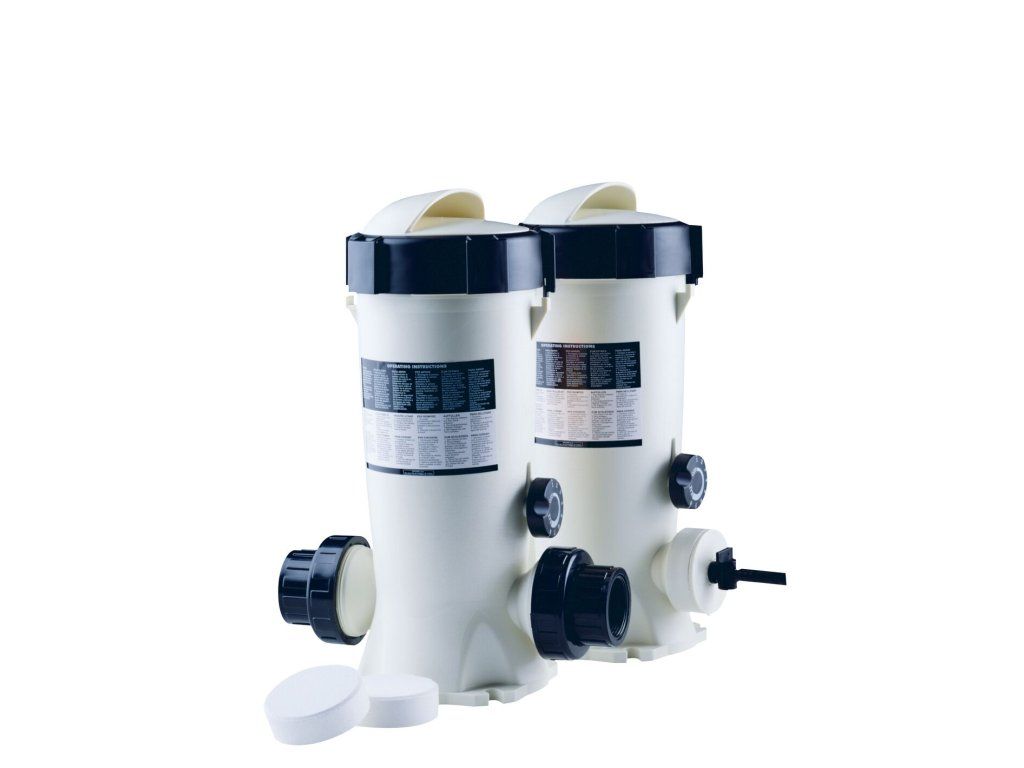 Poloautomatický dávkovač tabliet – paralelné napojenie hadičkami slúži na priebežné dávkovanie bazénovej chémie vo forme pomalyrozpustných 200 g tabliet chlóru alebo brómu. Je určený na paralelné napojenie cez hadičky, čím sa integruje priamo do bazénového cirkulačného okruhu.