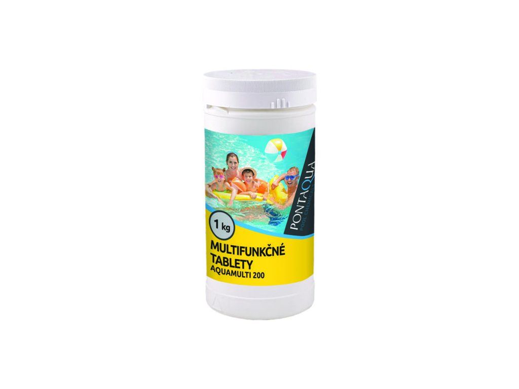 Pontaqua Multifunkčné tablety (200g) - 1kg sú profesionálne pomaly rozpustné tablety „všetko v jednom“, navrhnuté na komplexnú a dlhodobú údržbu bazénovej vody. Každá 200 g tableta spája tri kľúčové funkcie: (1) stabilnú dlhodobú dezinfekciu na báze stabilizovaného chlóru s obsahom 90 % aktívneho chlóru, (2) aktívnu prevenciu proti riasam vďaka síranu meďnatému a (3) UV stabilizáciu chlóru pre efektívnejšiu prevádzku najmä vo vonkajších bazénoch.