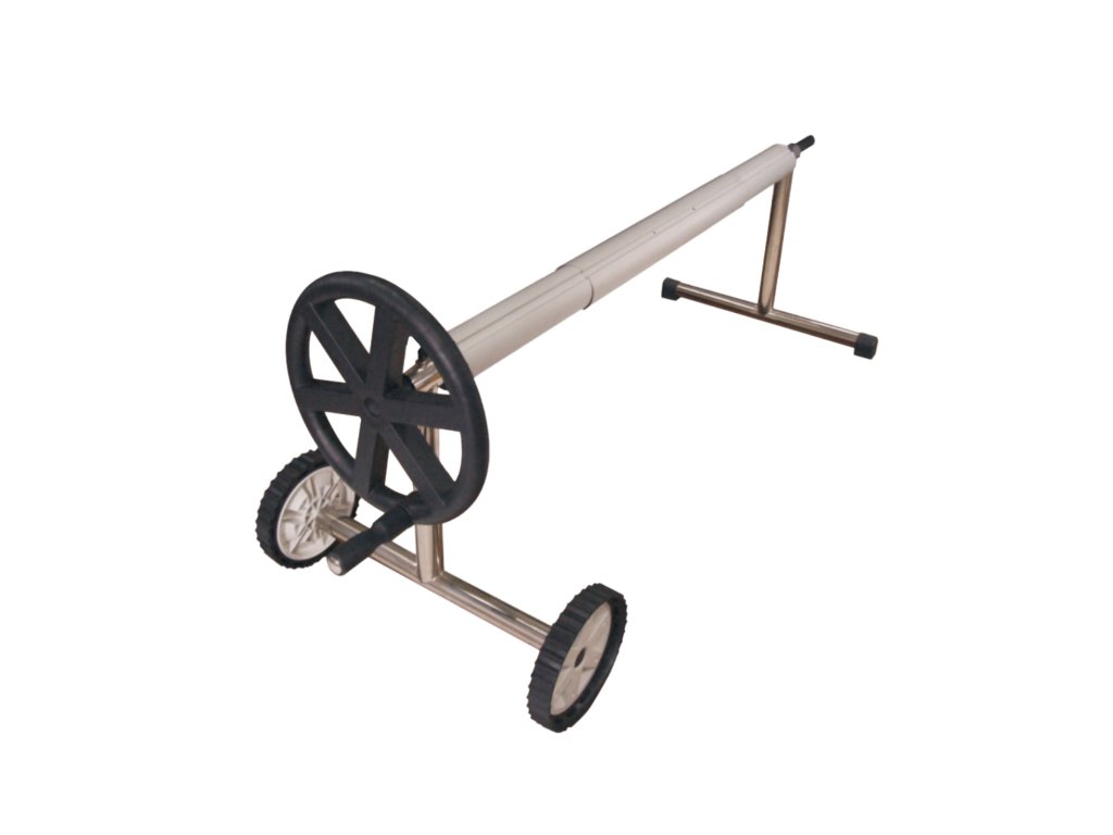Prenosné navíjacie zariadenie Ø 82 mm (3,4 – 4,7 m) uľahčuje rýchlu a bezpečnú manipuláciu so solárnou plachtou a jej skladovanie. Mobilný stojan z nehrdzavejúcej ocele a hliníkové rúry prvotriednej kvality zaručujú spoľahlivú prevádzku.