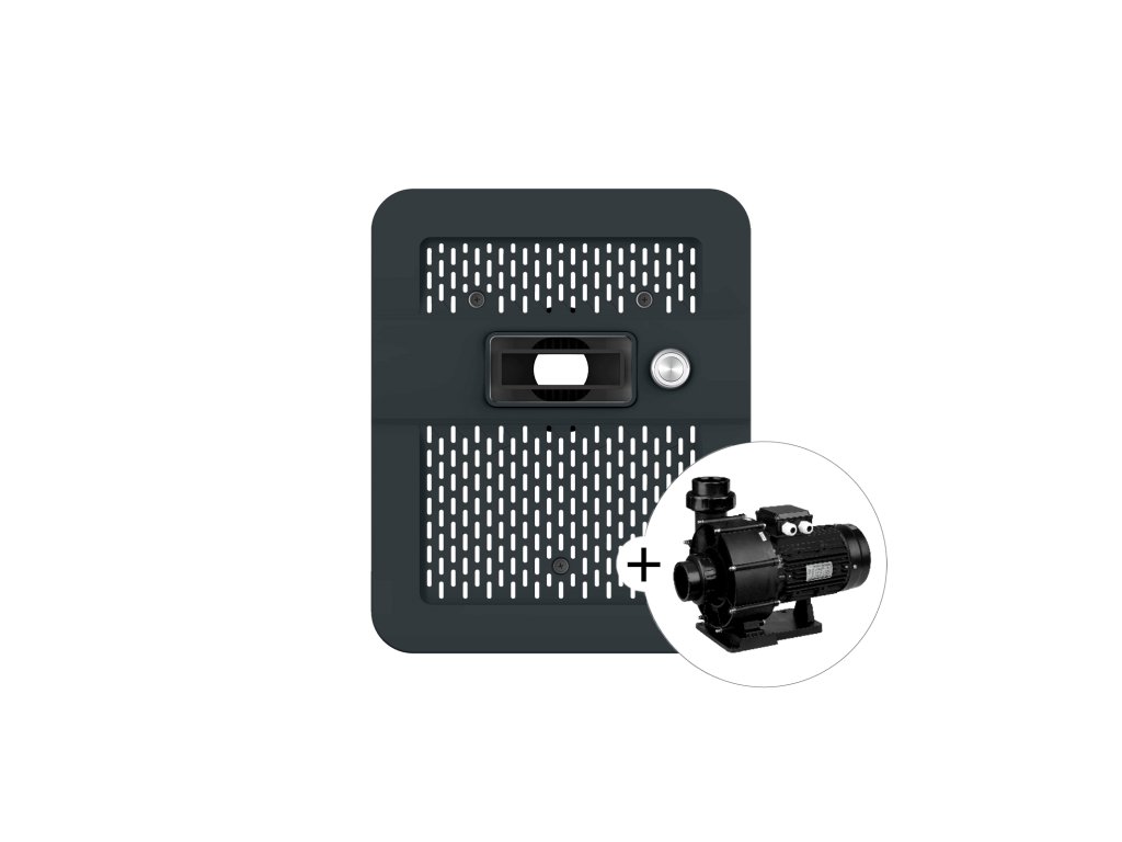 Predný panel s centrálnou tryskou Ø42 mm umožňuje pripojenie čerpadla s výkonom 3 HP (230 V) alebo 4 HP (400 V). Prietok vody a vzduchu je možné jednoducho nastaviť otočným tlačidlom priamo na paneli.