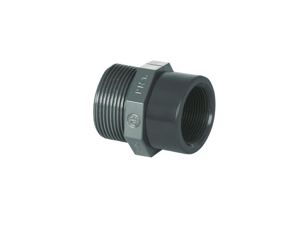 PVC tvarovka – redukcia 1 1/2" ext. × 1" int. (závit/závit)