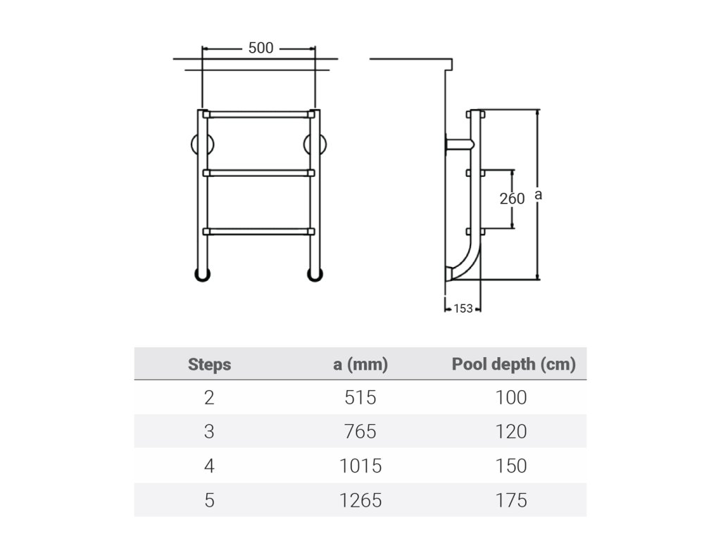 - spôsob montáže: kotvenie skrutkami do vnútornej steny bazéna
