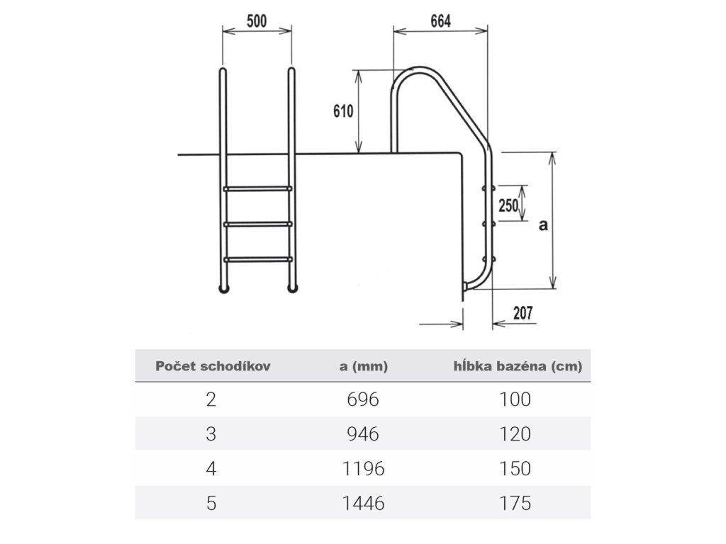 - dĺžka rebríka pod úrovňou bazéna: 94,6 cm