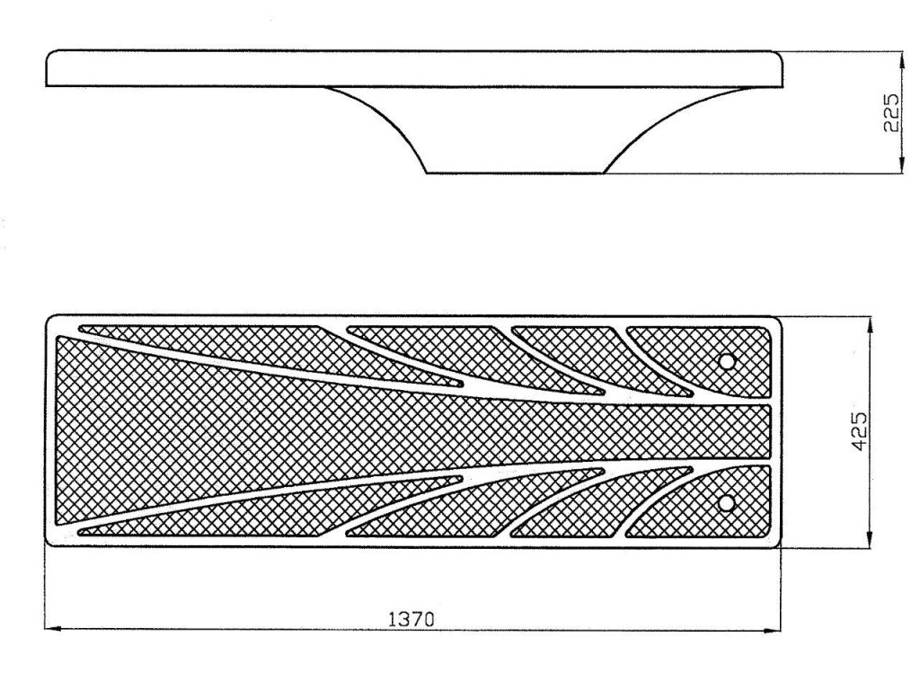 - Rozmery: 1400×425×250 mm (dĺžka × šírka × výška)