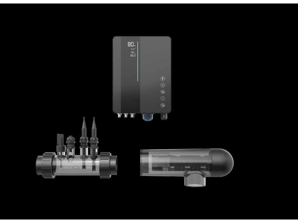 Integrovaný senzor soli, plynový senzor v telese cely, Wi-Fi a mobilná aplikácia umožňujú sledovať ORP, pH, teplotu a salinitu v reálnom čase, ukladať históriu meraní a aktivovať Turbo/Boost režim jedným kliknutím. Modulárny celohousing a samočistiaca cela s reverziou polarity minimalizujú nároky na údržbu a zjednodušujú servis.