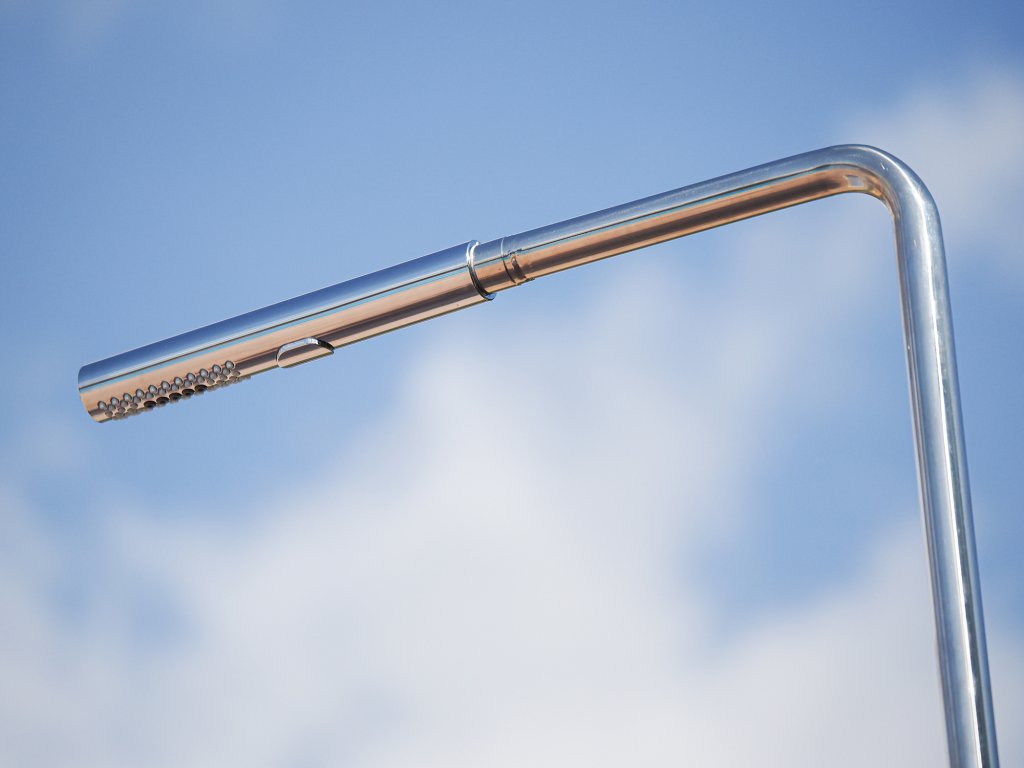 Nerezová konštrukcia zabezpečuje mimoriadnu odolnosť voči korózii aj náročným poveternostným podmienkam, takže je sprcha ideálna pre záhrady, bazény, pláže, kempy či wellness zariadenia.