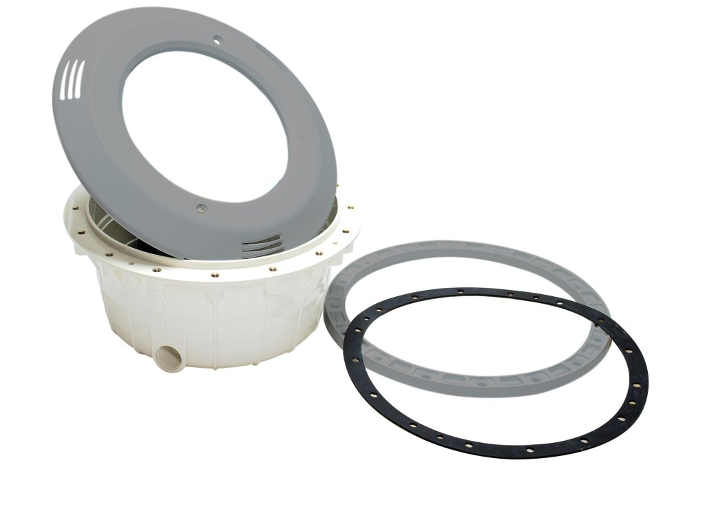 Svetlo VA pre fóliové bazény, svetlosivé (RAL7004) je pripravené na montáž a osadenie kompatibilnej bielej LED 33 W / 12 V.