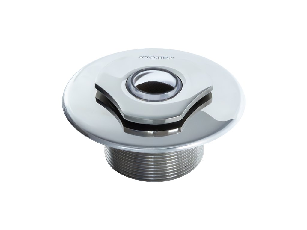 Vtoková tryska VAMILA nerez s transparentnou guličkou 25 mm a závitom 2" z nerezovej ocele AISI 316. Vhodná na osadenie do väčšiny priechodov betónových bazénov.