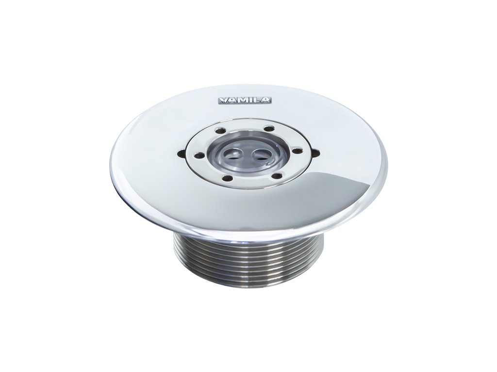 Vtoková tryska VAMILA nerez – zapustená s transparentnou guličkou s priemerom 2 × 7,8 mm a vonkajším závitom 2". Celonerezové vyhotovenie pre čistý vzhľad a odolné napojenie v bazénovej technológii.
