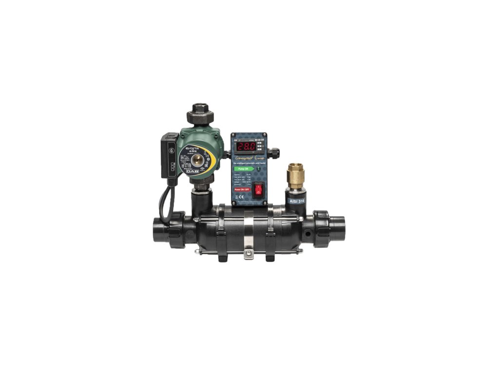 KIT D-KWT-VA Compact Line / SS316 45 kW je hotový výmenník tepla (obehové čerpadlo, ovládanie, hotové elektrické zapojenie) s rebrovanou rúrkovou vložkou z nehrdzavejúcej ocele a kompaktným telom z polypropylénu (PP).