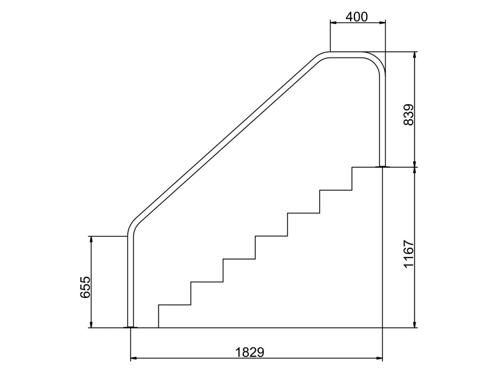 Zábradlie FX-06, 1169 x 1829 - 460mm, AISI316 je kvalitný nerezový madlový prvok z leštenej ocele AISI 316 / V4A, s rúrou s priemerom 43 mm. Slúži ako bezpečný a pohodlný úchop pri vstupe a výstupe z bazéna alebo SPA a zároveň esteticky dopĺňa jeho okolie.