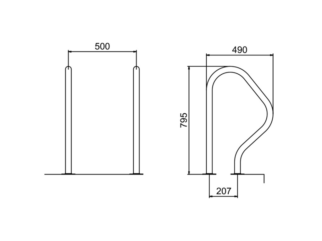 Zábradlie k rebríku, 795 x 490mm, AISI316L (1 pár)